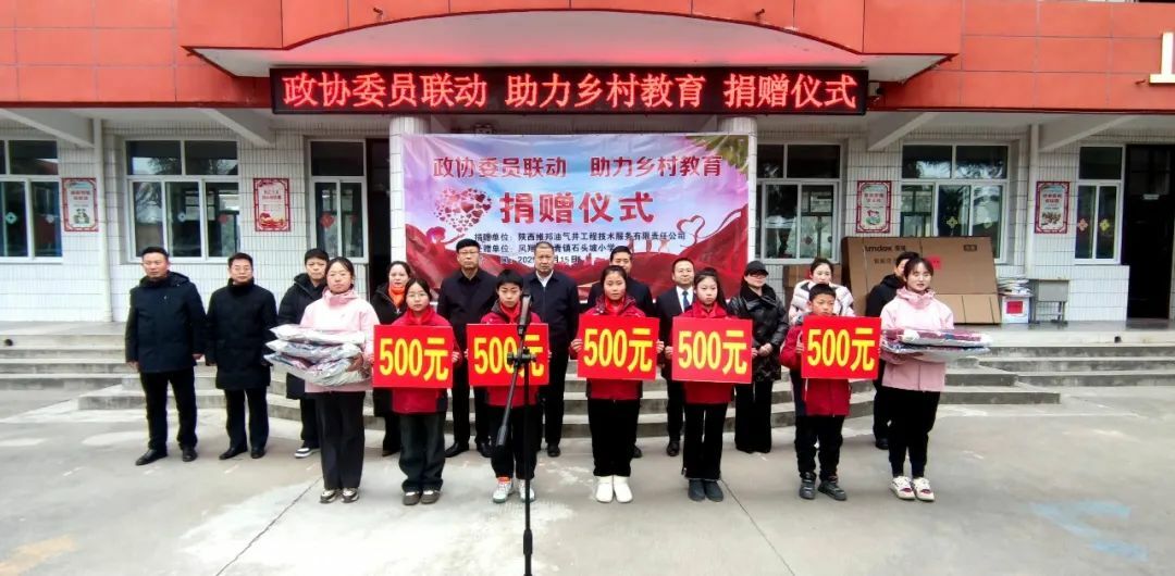 长青镇石头坡小学始建于1967年,现有6个教学班,是全镇仅有的一所小学,承担着6个村的小学教学任务。活动中,陕西维邦油气井工程技术服务有限公司董事长刘希智向长青镇石头坡小学180名学生捐赠了书包、文具盒、空调、打印机、智慧黑板等爱心物资和新春服装,向35位学生和20位教师每人捐赠500元,向1名高二特困学生捐赠1万元。爱心企业和人士捐献的物资和助学款,改善了学校的教学条件和同学们的学习环境,也激励着同学们奋发学习,长大后能帮助更多的人,让爱循环生生不息。